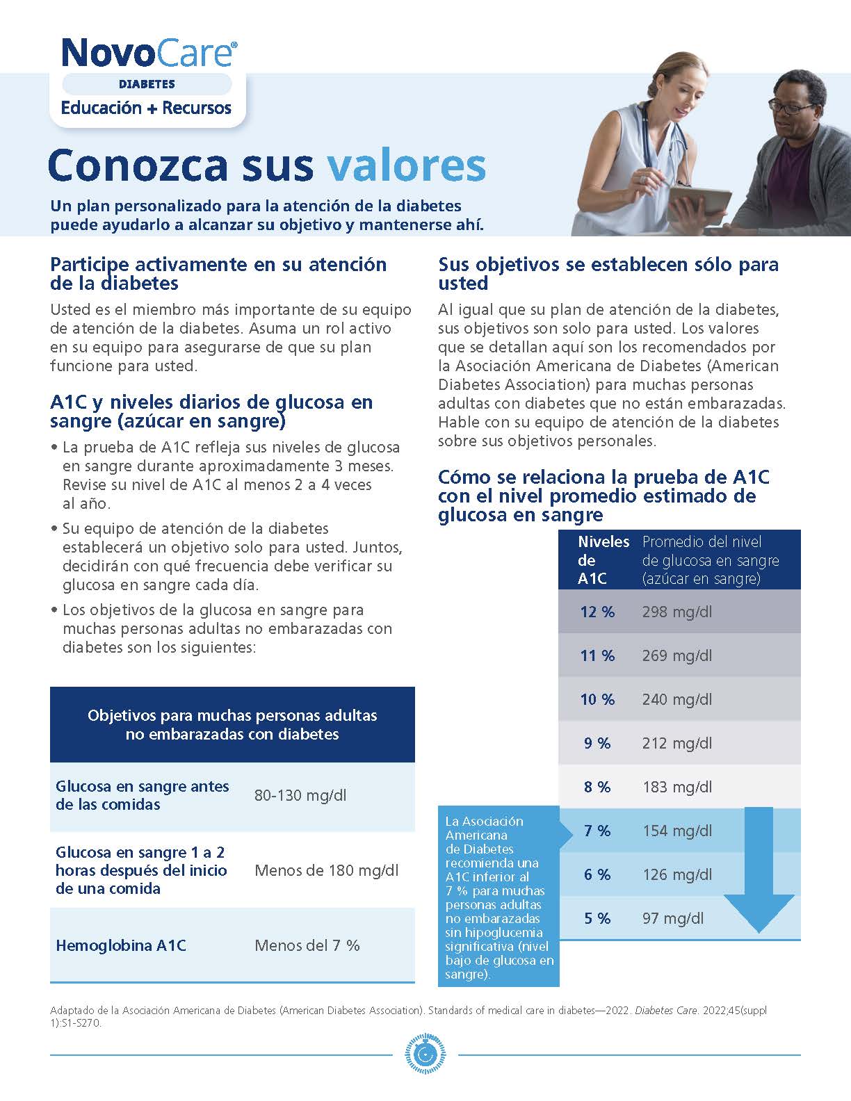 Estos son los objetivos que la Asociación Americana de Diabetes (ADA) recomienda para los adultos y las mujeres adultas con diabetes que no están embarazadas. Sin embargo, su médico personalizará su plan y establecerá objetivos adecuados para usted.